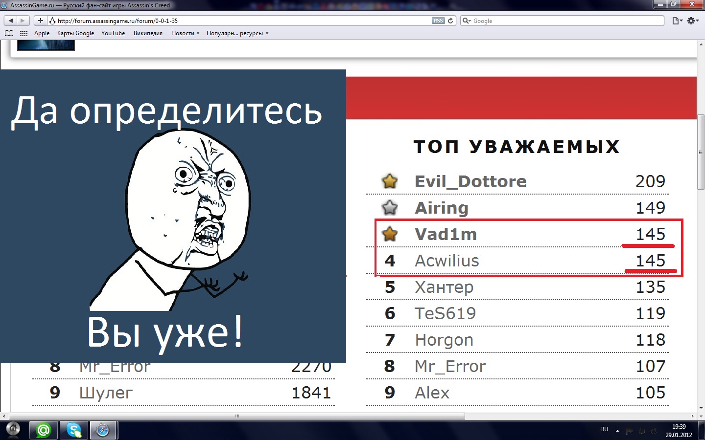 | Vad1m НЕВЕРНЫЙ! Сообщений: 1855 Награды: 16 Репутация: 268 Известность: 0% Статус: Вне Анимуса | | #9211 | Написано: 29.01.2012, 21:51 |  |